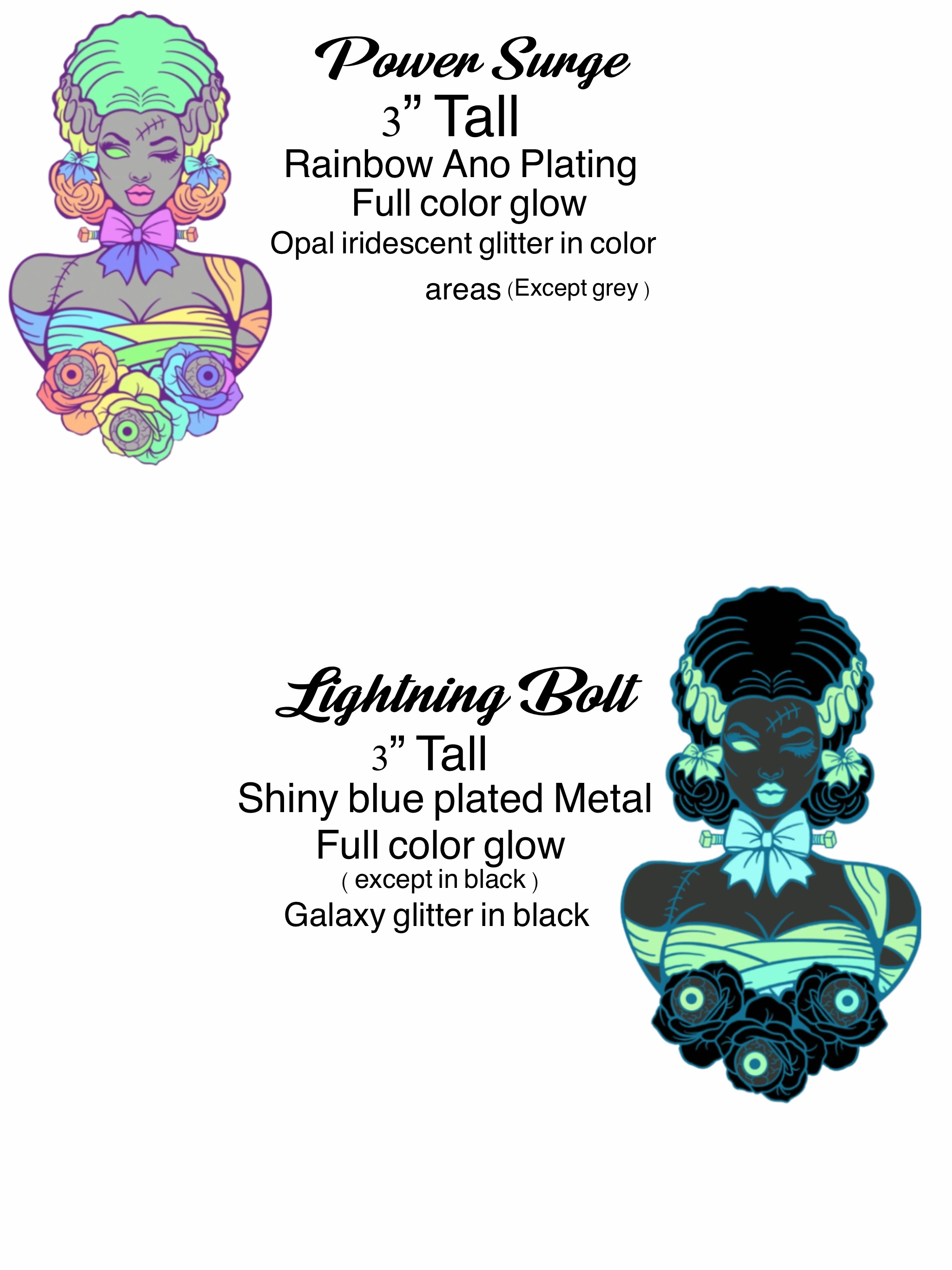 The Tingle Level: Just a little tingle to get you excited! Available at a discounted price for first 48 hours! Anyone who purchases the Tingle level, which is 2 Frankie pins, will receive a free Frankie sticker, will get a free 1” matching lightning bolt pin to their Frankie variant ,and be entered for a chance to win the secret Gift Variant of the Frankie pin! ( MUST purchase 2 Frankie pins at same checkout to be eligible! Not individual orders )