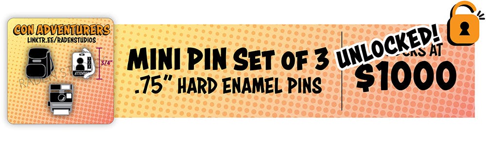 Our initial goal is $1000! This funds the project and unlocks the first hard enamel pin, set of 3 mini pins, and bonus backer rewards. Our initial goals, which would unlock the full base set of series 2 pins, are mapped out below!