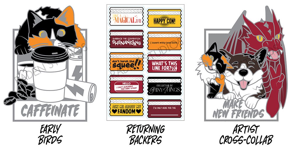I'm so excited to bring this new original set of pins to you that celebrate the fun, community, and adventure of conventions!