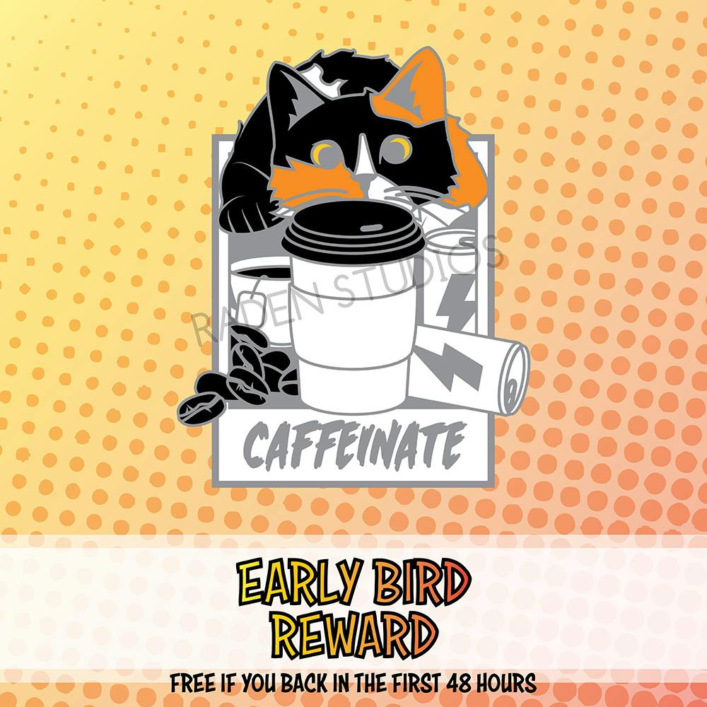 Con Adventurers 2 launches in about four more hours, so I wanted to send one last update to everyone to make sure you had a look at the early bird freebie! CAFFEINATE is a 1.5" tall hard enamel pin in the same style as the main pins and will be free for backers in the first 48 hours.