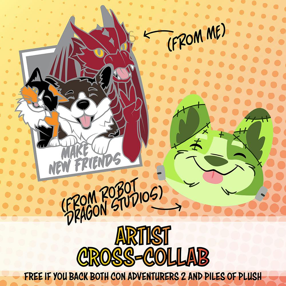 Cross-Collab pins with Robot Dragon Studios.