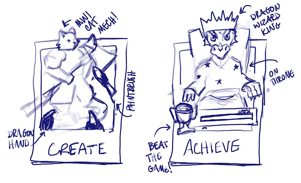 I'm also considering switching Achieve to COMPETE and focusing on gaming competition instead but I don't have a sketch of that one.