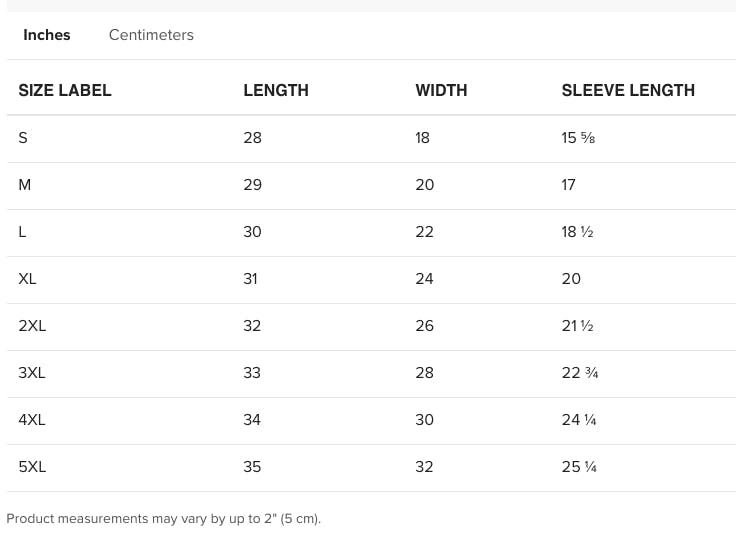 Wake up from your Thanksgiving food coma, everyone! There's less than 72 hours left in the Backerkit Holiday Market as I write this. Before the event closes on Monday (at 2 pm PST, by the way), I want to pass along some potentially helpful information to those of you interested in buying our short-sleeve t-shirts: a size chart, provided by the manufacturer themselves, for the model of t-shirt we will have our printer use for your order. Please note that measurements are given in inches, with width measured armpit to armpit, length measured from the nape of the neck down to the hem, and sleeve length measured from the shoulder to the hem: If you'd like to order a 4XL or 5XL, please do so directly through our website, we are not offering them through the Holiday Market.