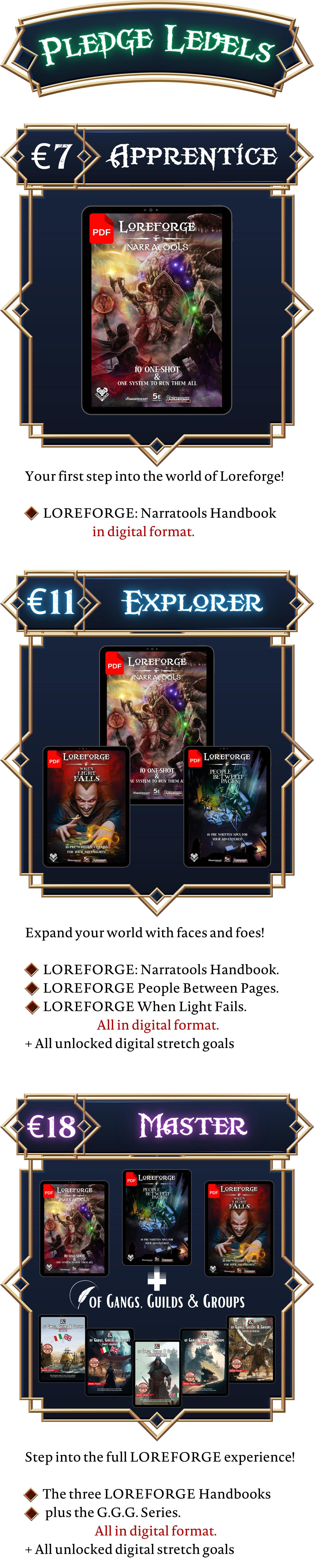 • The three Loreforge Handbooks plus: • The G.G.G. Series • The Cerberus’ Lair Series • Chronicles’ Starter Pack