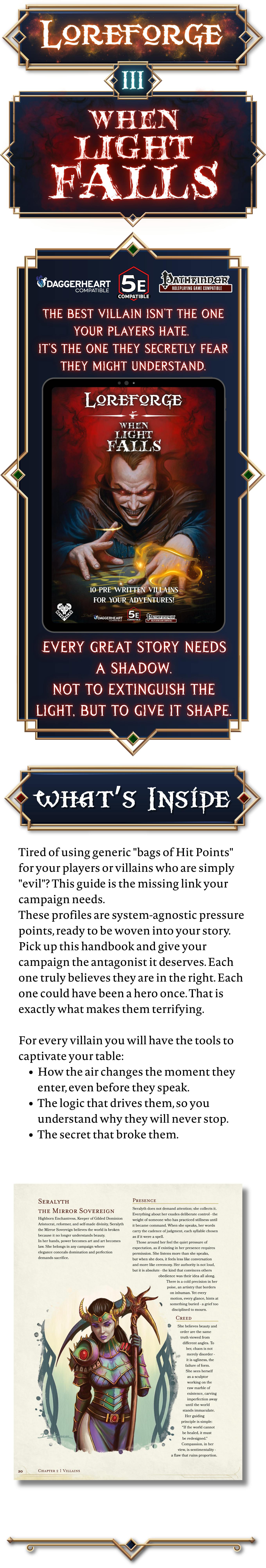 For every villain you will have the tools to captivate your table: