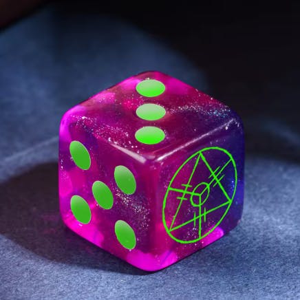 The custom dice will replace the 6 pips with the Sisters of the Dawn sigil, and while I'm still working with a dice factory to figure everything out, I'm hoping for something similar to this: