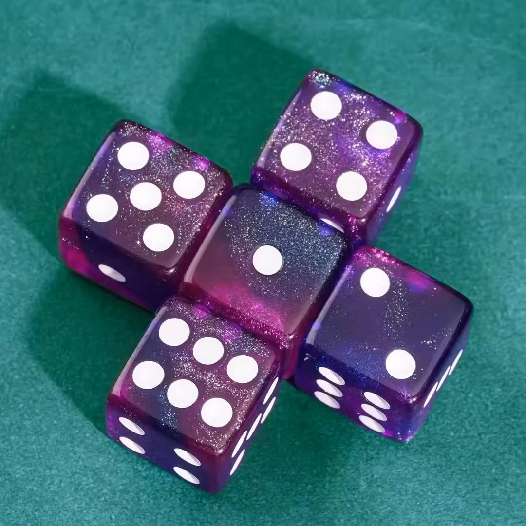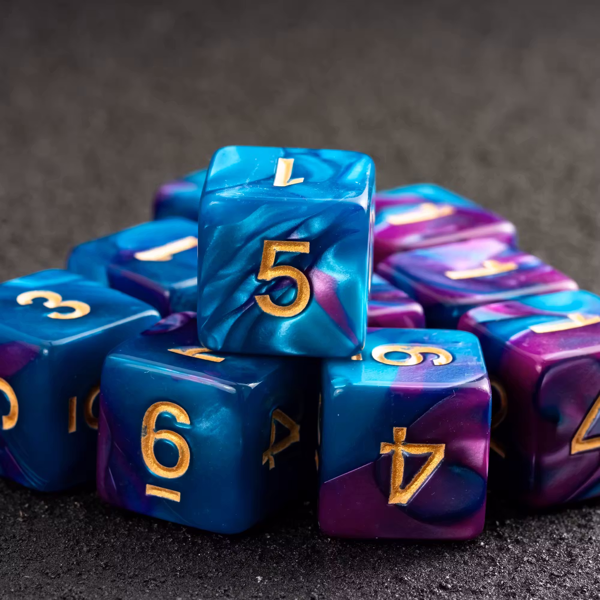These swirly blue and purple dice have been chosen!