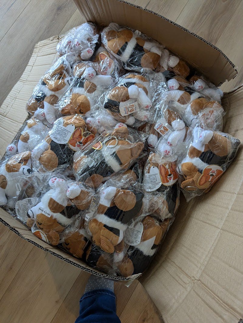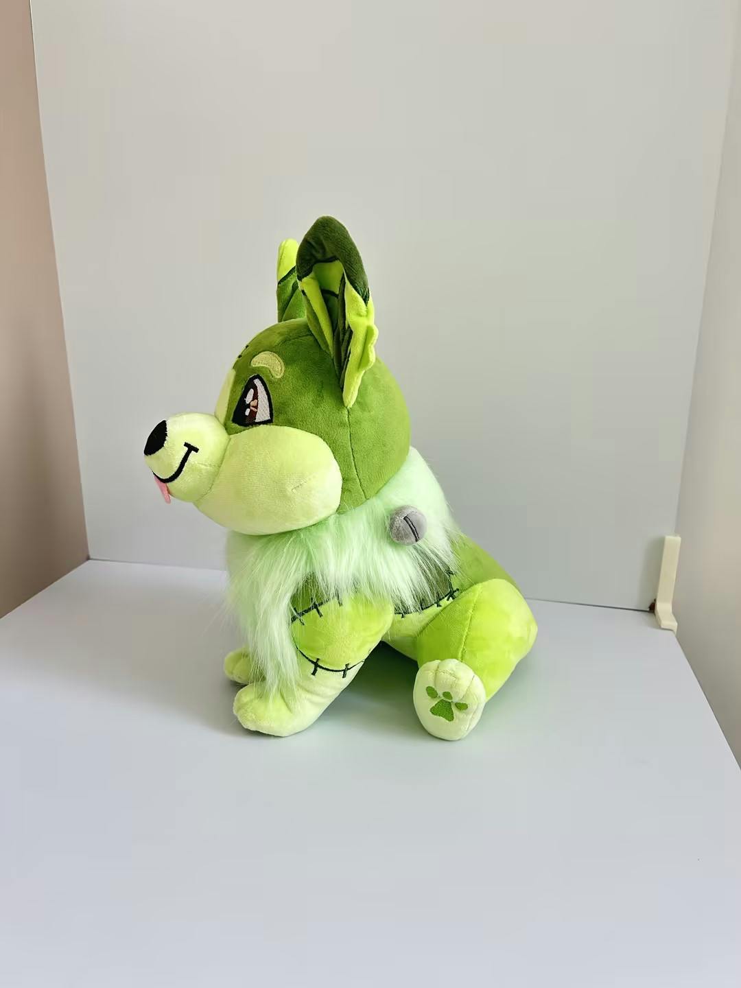 The two samples are being sent to me currently. Their noses are actually supposed to be dark green but that will be fixed in production. The chest fluff on the large dog should match the keychain as well but it's $1500 to get it custom dyed, so just know this project requires way more funding. It may fail. We'll see. I will do a poll if people want the keychain or large plush first.