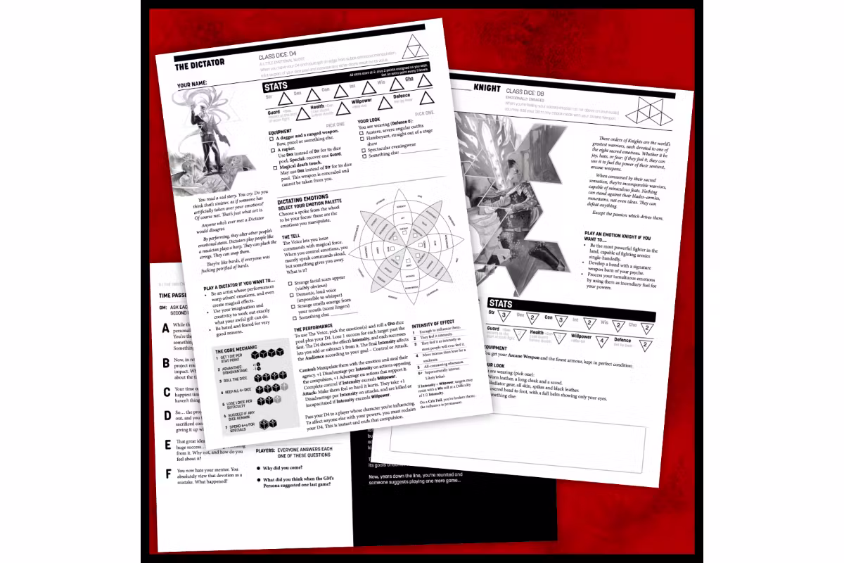 Kieron Gillen (DIE - the comic and the RPG, The Power Fantasy, The Wicked + The Divine, and, again, just a bunch of good stuff) is closely involved in the creative process, from building and refining the core idea to contributing words to the book.