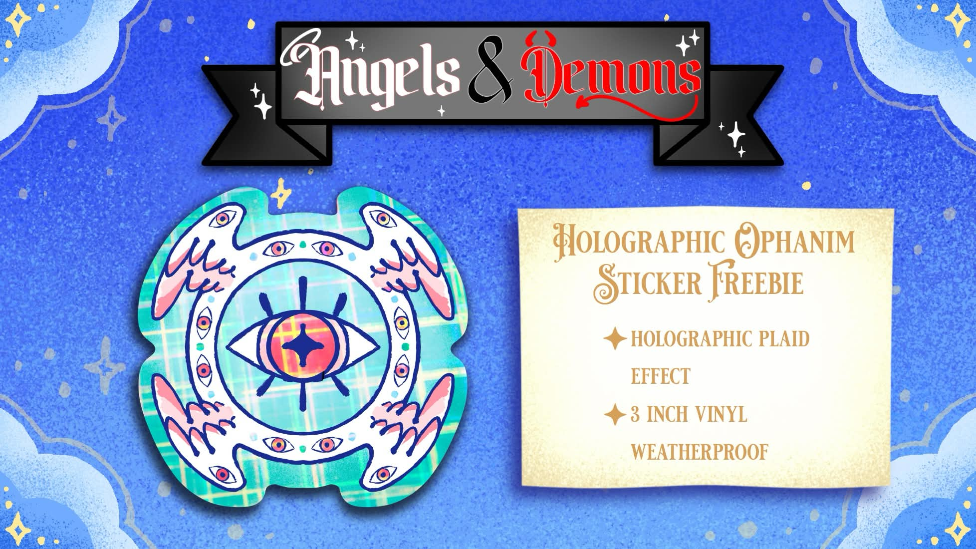 Early Bird Backers within the first 48 hours will receive a freebie sticker of the Seraph design as a sticker. Sticker will be 3 inches big and holographic waterproof vinyl.