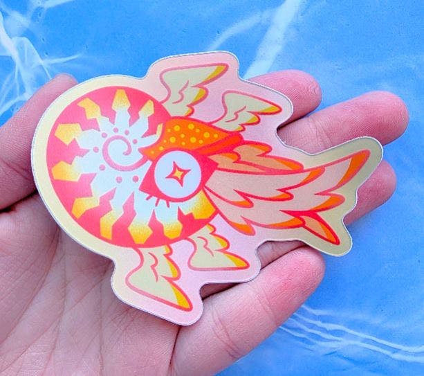 All three mini angels are original characters designed based on biblical angels. (Cassiel: Blue, Azrael: Purple, Dumah: Red) Each angle is 1.5 inches big and colored soft enamel epoxy chrome. Comes with a free soft holo Angelic Nautilus 3 inch vinyl sticker.