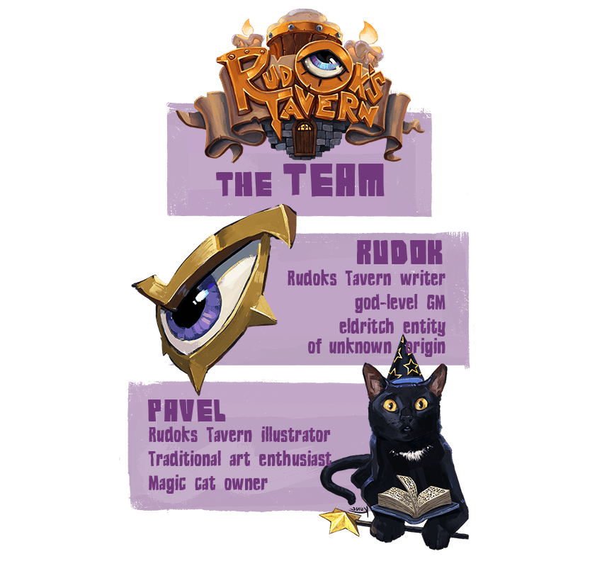 We are Rudok's Tavern, a dynamic duo that has been creating Homebrew tabletop content for almost seven years. We started off as two enthusiastic amateurs who played D&D together and wanted to share some of our ideas and worldbuilding – over the years we have made hundreds of magic items and monsters and improved our Homebrew craft with each creation.