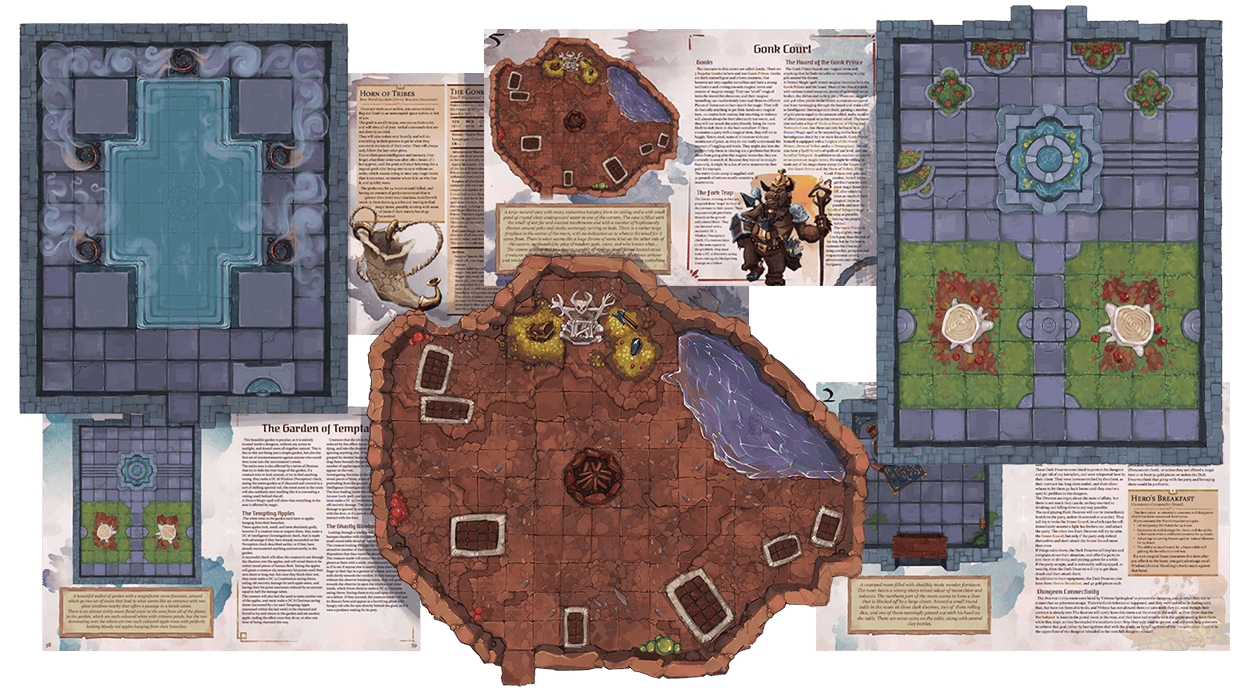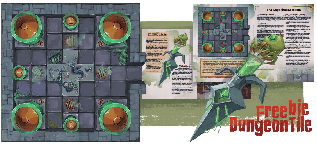 Dungeon Tiles are unique modular battlemats, each of which comes with its own unique encounter that includes, mechanics, monsters, traps or anything you would find described in a dungeon crawl room. These rooms are designed to be usable independently, allowing you to add them to your own dungeons or adventures as you see fit. In addition, they can serve as the foundation for the Necromancer’s Dungeon mini-adventure, which you can use as a full-on dungeon crawl with additional lore, world-building and extra mood and ambience.