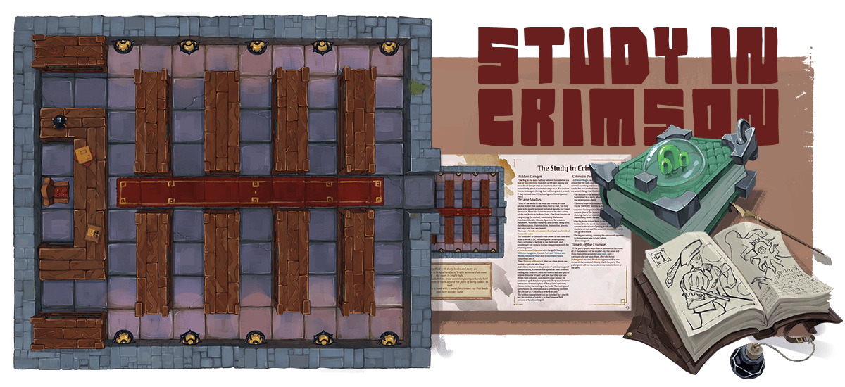 A place of forbidden and esoteric knowledge, filled with dusty tomes and ancient grimoires. A peaceful solace from the horrors of the estate. One must be careful not to disturb or to overstay their welcome – there is grave danger to be found among the books and scrolls, waiting to be awoken.