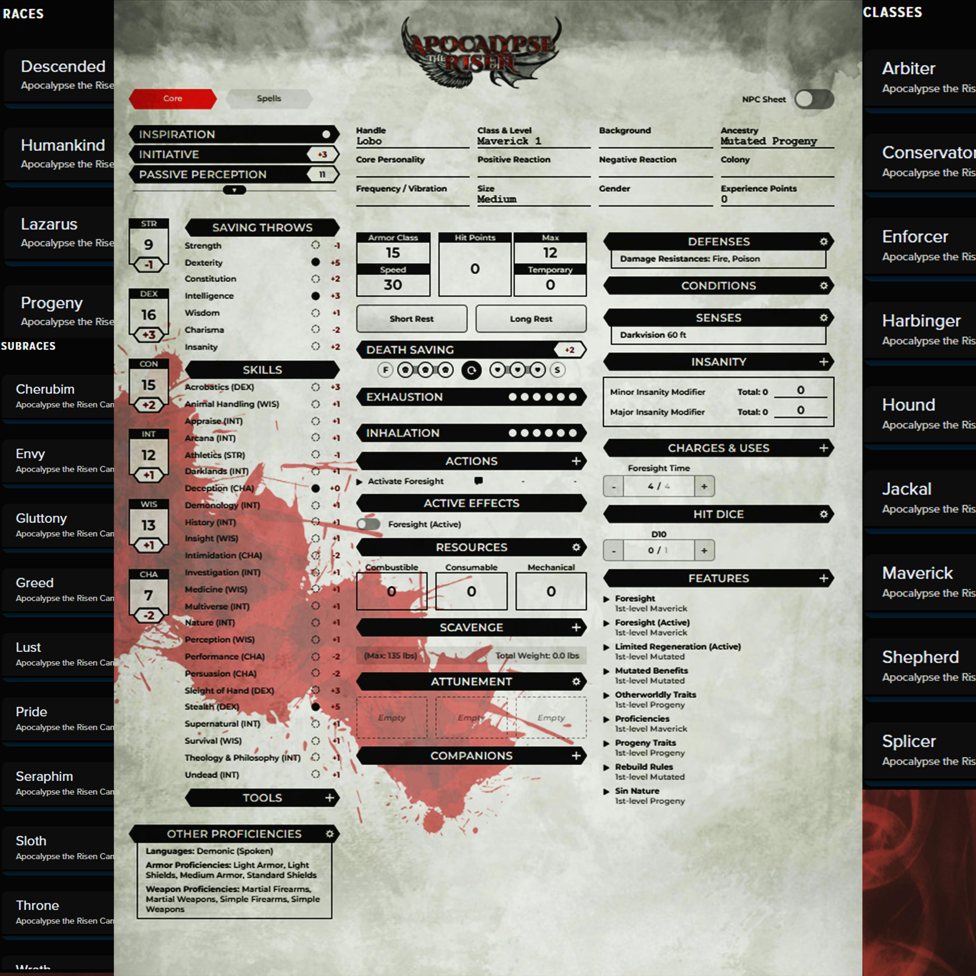 Apocalypse the Risen integration for Roll20 is well underway. We are working on a narrated video showing the functionality of the AtR Charactermancer Character Sheet. As soon as that's online we'll update you again.