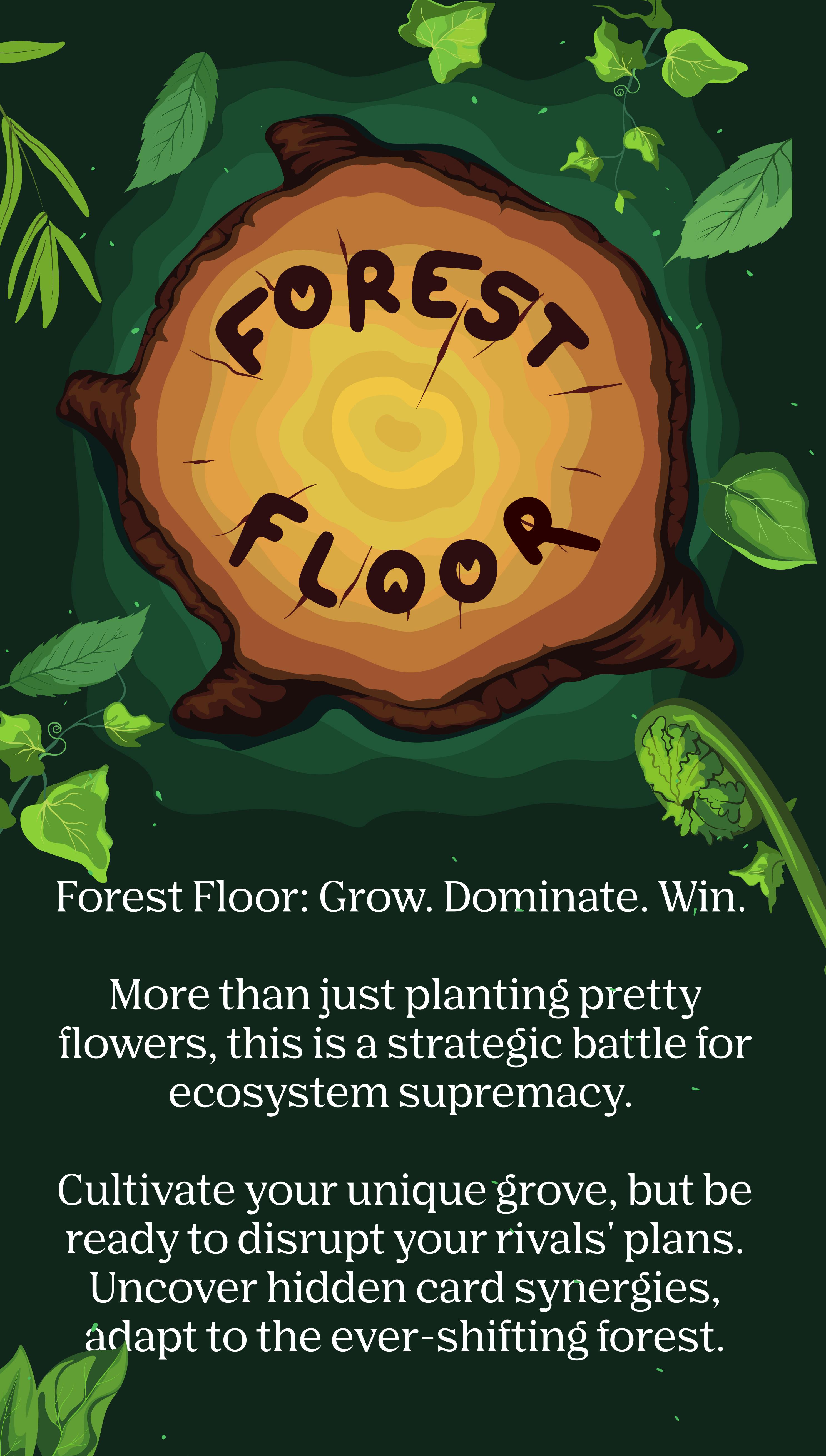 Your garden, their battleground. Forest Floor isn't a solo grow. The Mulch phase throws chaos into the mix—subtle sabotage or sudden shifts. Every play matters. Outwit, adapt, conquer.