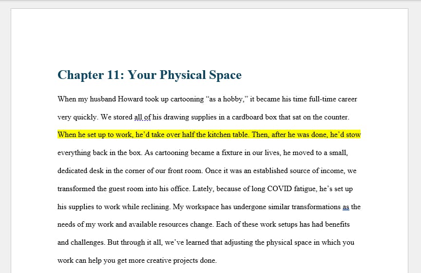 First paragraph of chapter on Your Physical Space where the fragment can be seen "everything back in the box"
