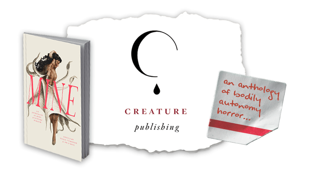 Our special Creature's Cache reward tier is offered in collaboration with Creature Publishing, a rad small press specializing in feminist, queer, and trans horror, dark speculative fiction, women-driven thrillers, and spooky fantastical and literary fiction. Here's a little bit more about them: