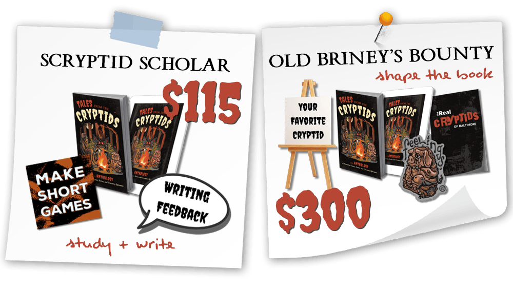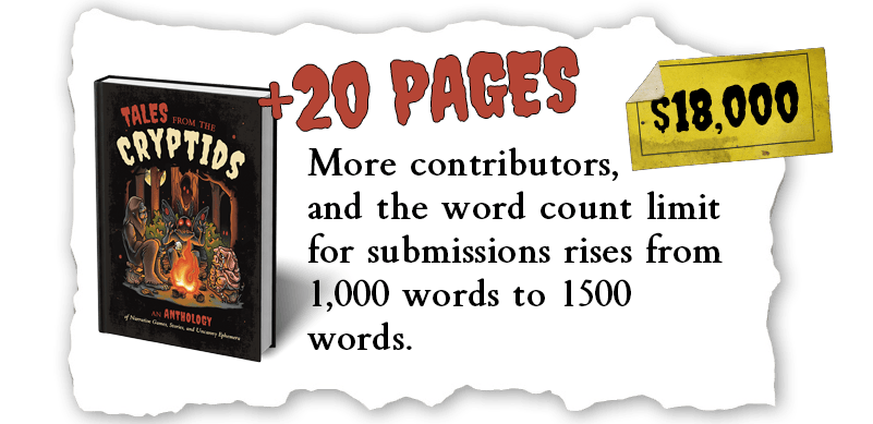 Designers and writers, now that we've funded Tales from the Cryptids, this anthology project is officially open for submissions! We are seeking games, fiction, poetry, and uncanny ephemera for publication in this collection of gloriously liminal work.