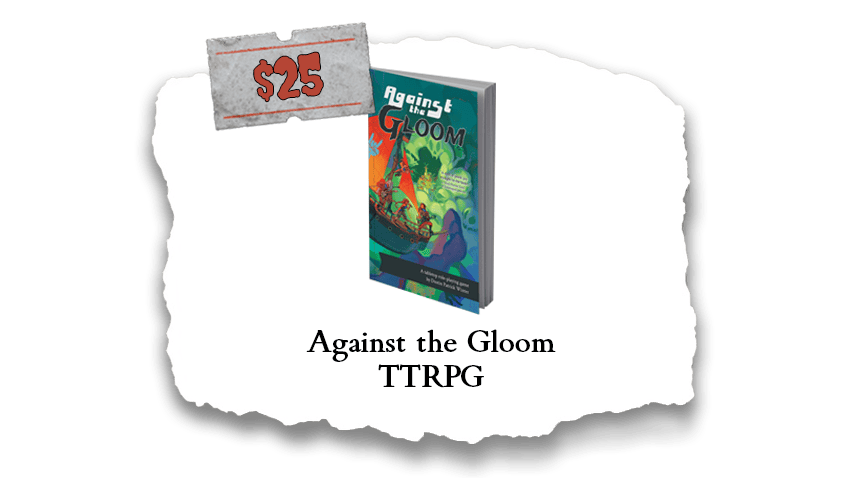 Roll dice. Build your playlist. Fight the Gloom. What if our heroes exchanged their battle axes for Stratocasters? And what if lyrics and harmony were actual magic? Against the Gloom is a fantasy TTRPG for 3-5 players about the joy and power of music, chosen family, and building community in the face of the void. Play as pirate rockstars touring across a vast and dangerous void—the Gloom—aboard a ramshackle ship propelled by the power of song. Use your favorite songs to create your world, then protect it from the Gloom, one rockin’ gig at a time. With an easy-to-learn d6 system inspired by Yahtzee, you'll harmonize dice values to succeed, earn and spend songs on a collaborative music playlist, and truly unite your band.
