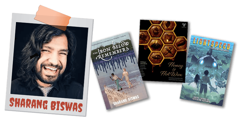 Sharang Biswas has won two IGDN awards, four Ennie Awards, an IndieCade award, and a Golden Cobra award for roleplaying games, as well as the Brave New Weird Award for fiction. His fiction and poetry have appeared in Lightspeed, Nightmare, Augur, Strange Horizons, and more. He is the co-editor of Honey & Hot Wax: An Anthology of Erotic Art Games (Pelgrane Press) and the author of The Iron Below Remembers (Neon Hemlock Press).