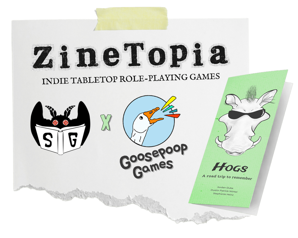 Our Zinetopia partner is Goosepoop Games, an indie studio publishing scrappy, silly, accessible TTRPGs and board games that spread positivity and introduce the world of games to new players.