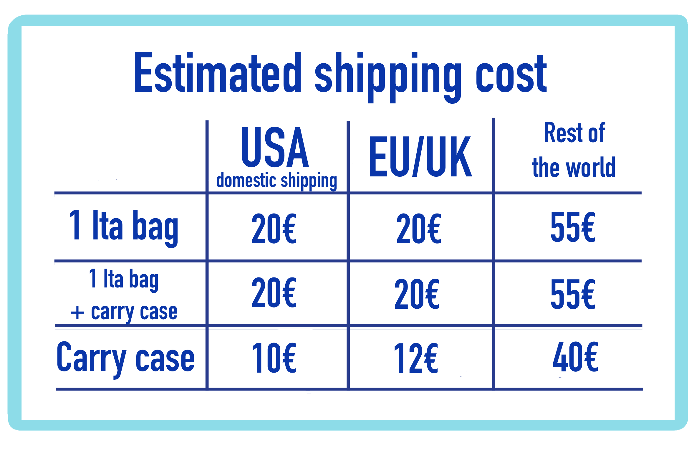 The following are estimates for shipping a bag/backpack with full package tracking, projected on current trends. Please note that these are estimates only and are subject to change by the time of fulfillment.