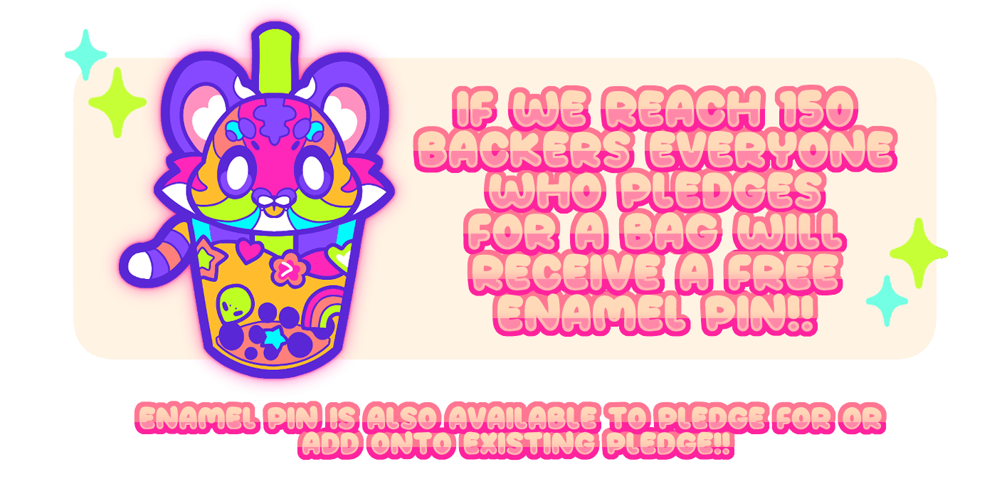 Any and all support would be so so helpful in us funding the rest of the Boba Buddy bags including the Rainbow Tiger!! :0 💖💖 There are plenty of smaller items available to pledge for if you don't want to commit to a bag! And there's a $1 Tip Jar tier if you wanna support but don't want merch! 😊