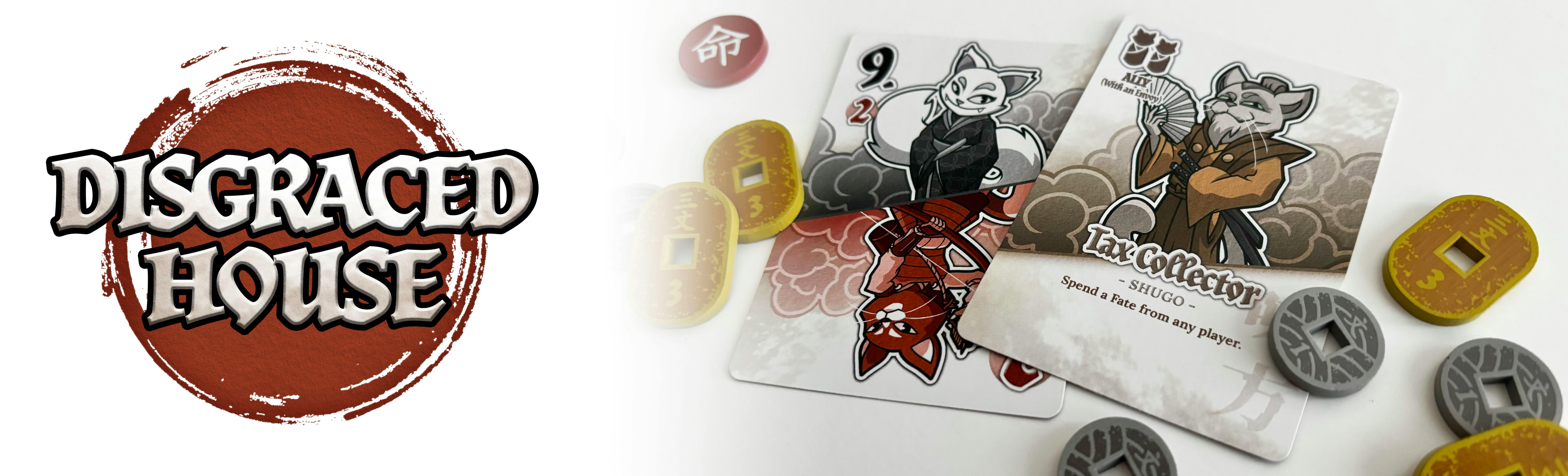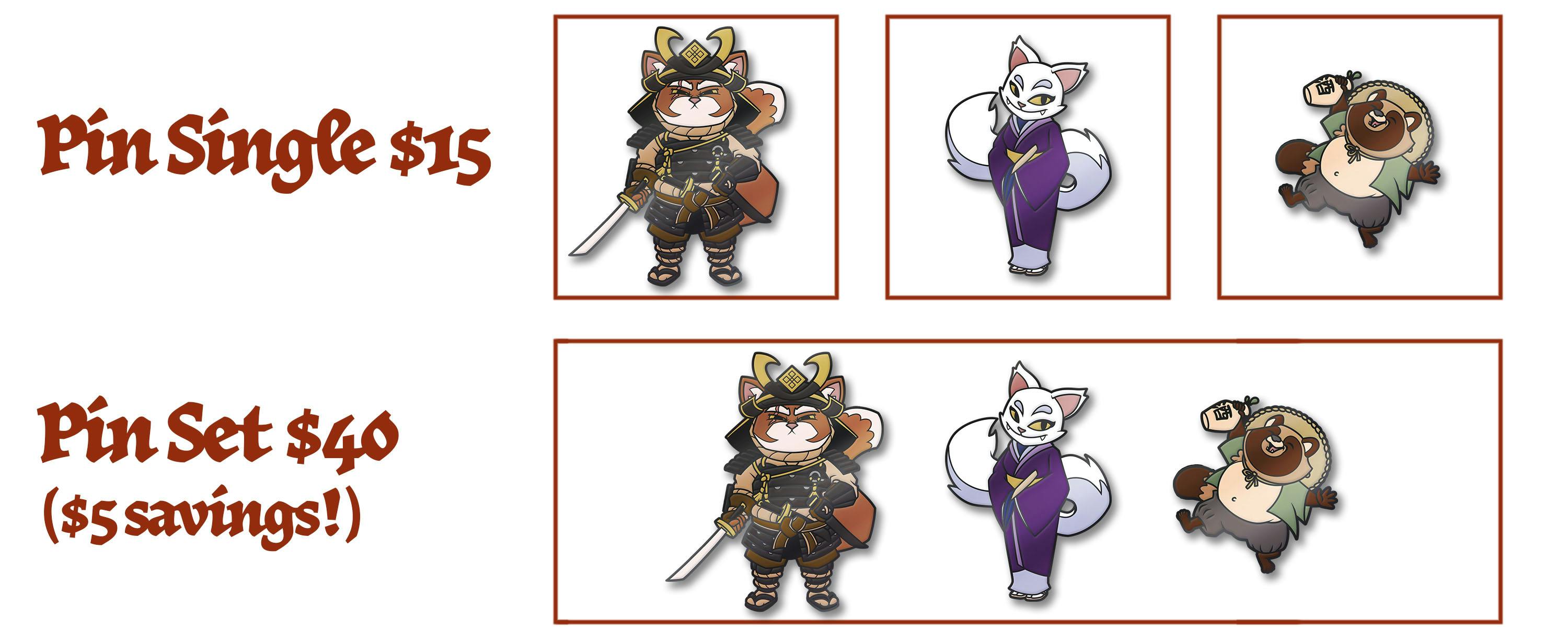 Honor & Mischief is a set of high quality enamel pins featuring characters from our card game Disgraced House - including the wise Shogun, the cunning Daimyo, and the Tanuki trickster. This campaign will fund the production of these hard enamel pins, as well as bonus mini pins which will be available as free promos during Pintopia 2026.
