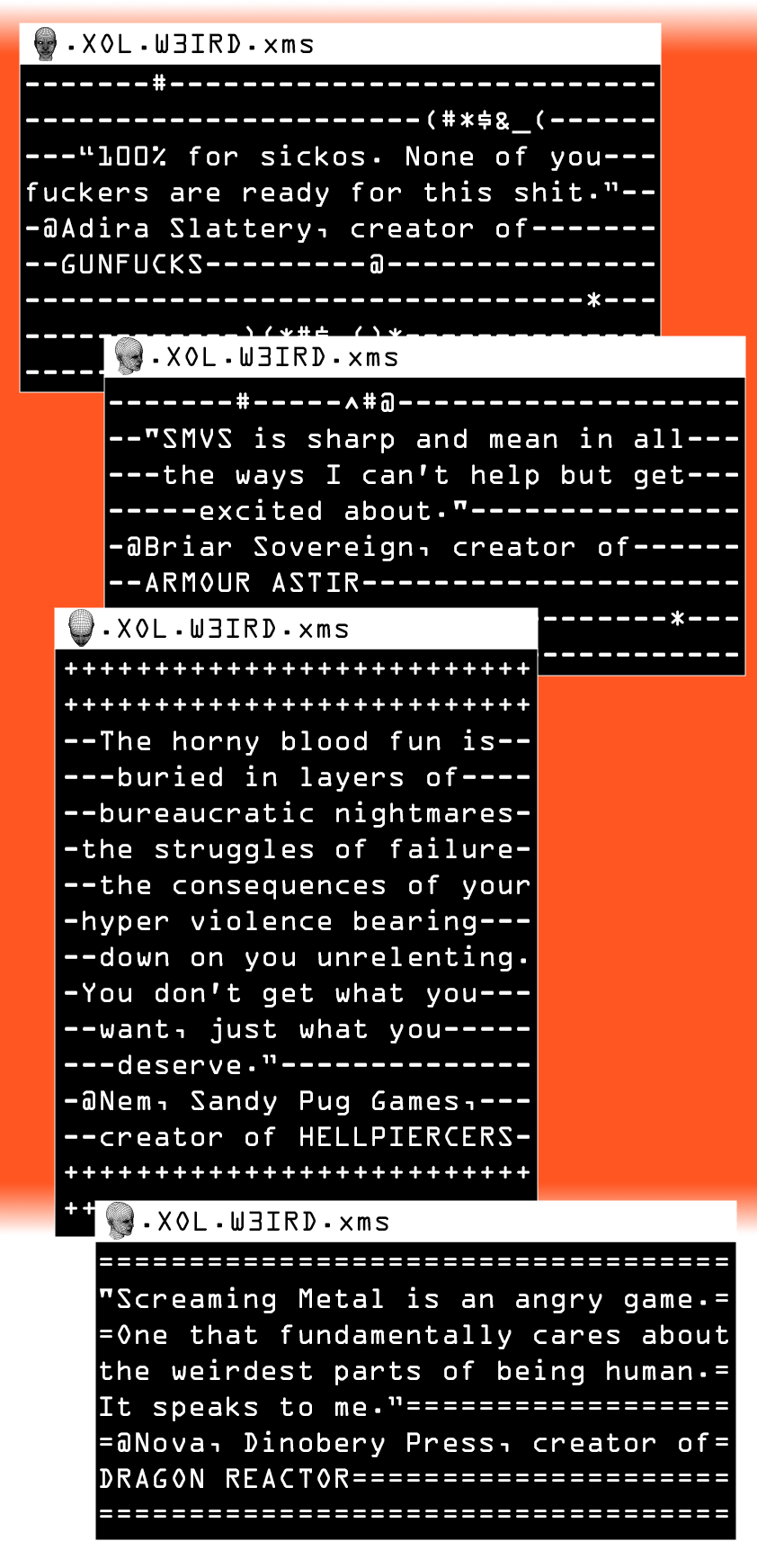 Screaming Metal: Vector Soul is a mecha ttrpg about toxic lesbians piloting living machines for exorbitant amounts of money so they can live lavish lifestyles before being torn to shreds by the poisonous arms of hyperspace. Solo or competitive~