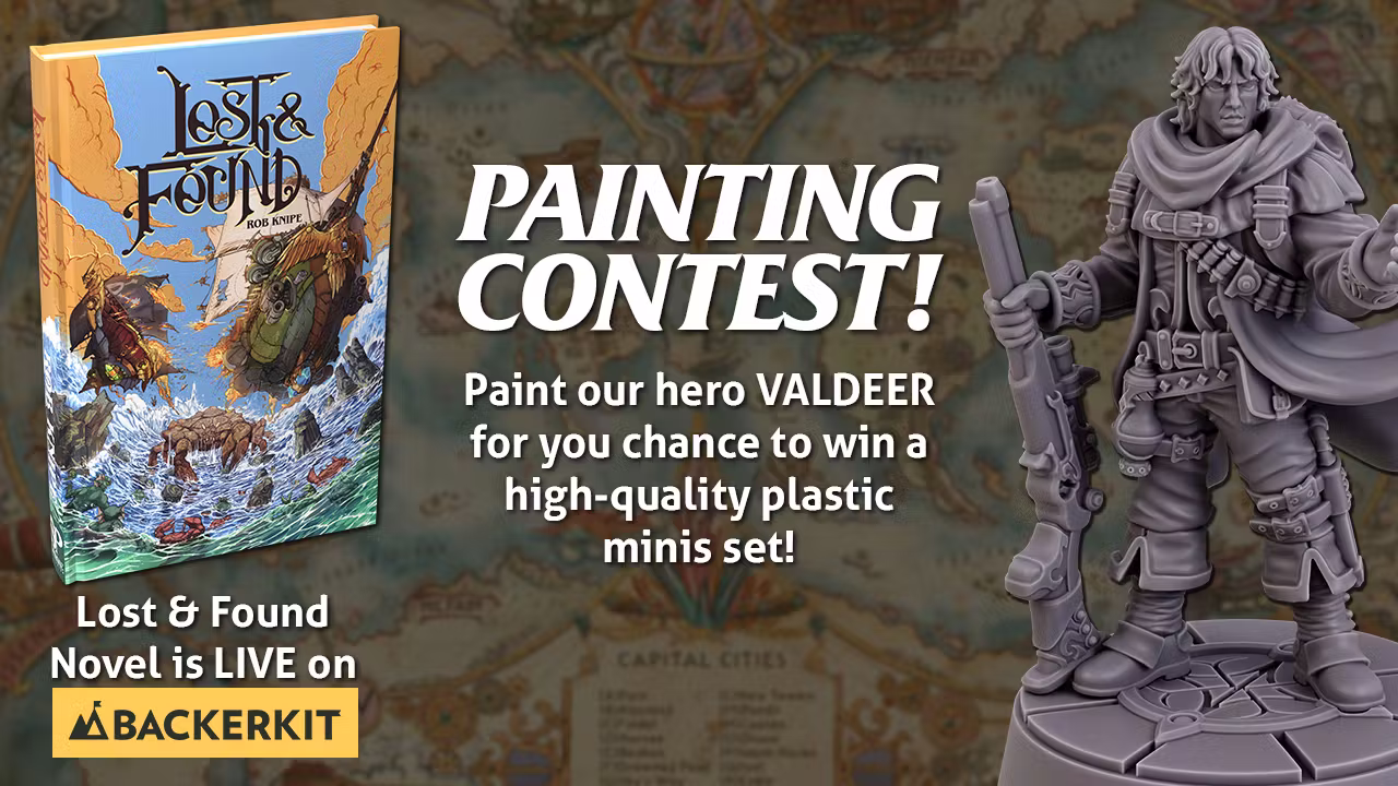 The winner will receive a complete set of Lost & Found miniatures, in physical and digital formats, valued at $90. The second and third prizes will be full STL sets of the Lost & Found heroes, valued at $25 each.
