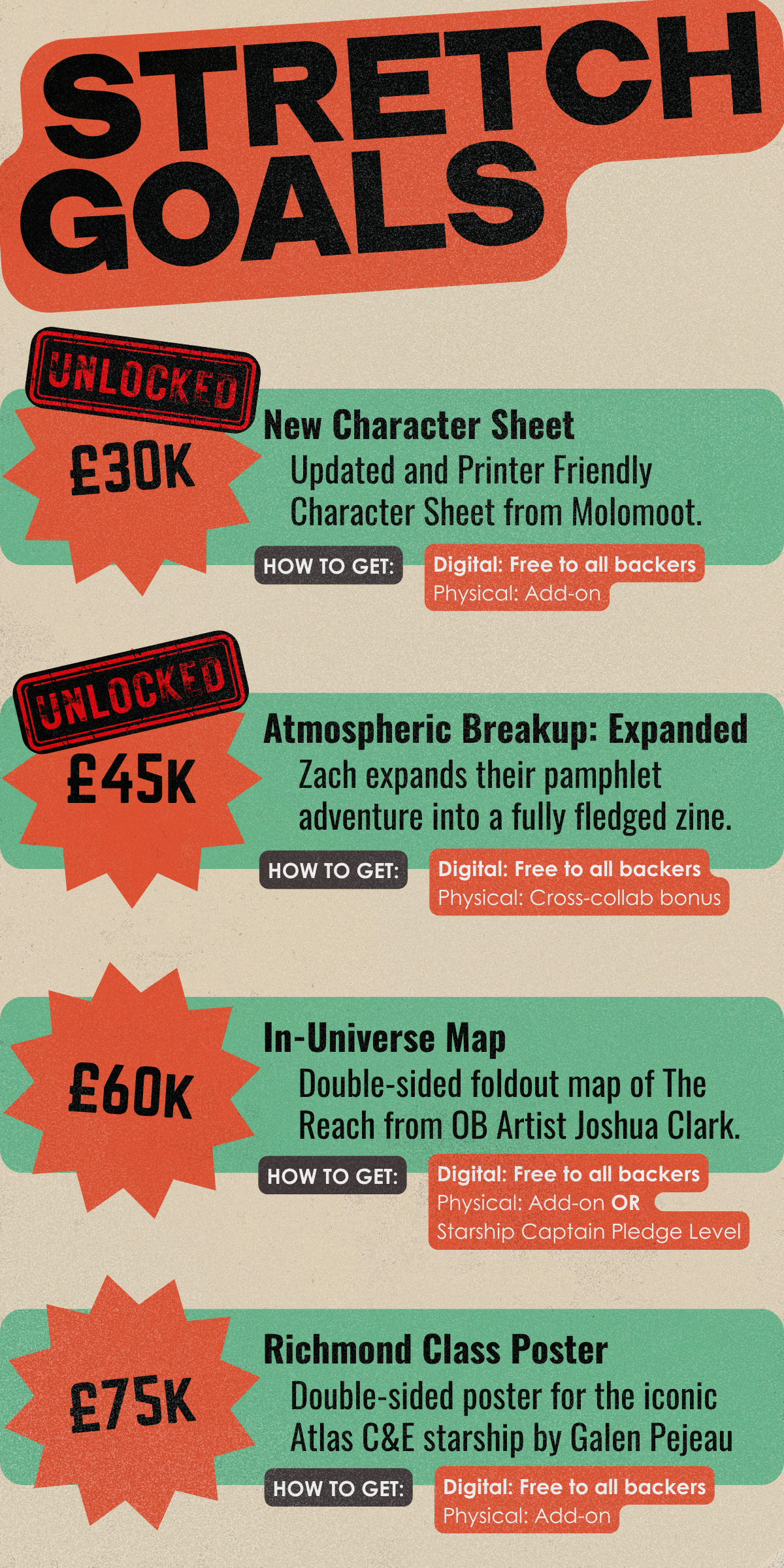 ATMOSPHERIC BREAKUP is a new adventure given as bonus rewards for backing all six Orbital Blues Month projects. Tune in to the stream to get a special behind the scenes of what to expect in this arc-ending adventure for our Sad Space Cowboys.