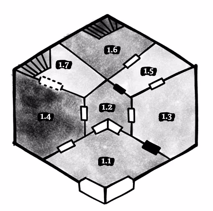Inkvein holds to this rule and then some. It is strict about space and layout. Make no mistake, detail isn’t sacrificed for this, but usability is more important than ever in a megadungeon. Let’s take a look.