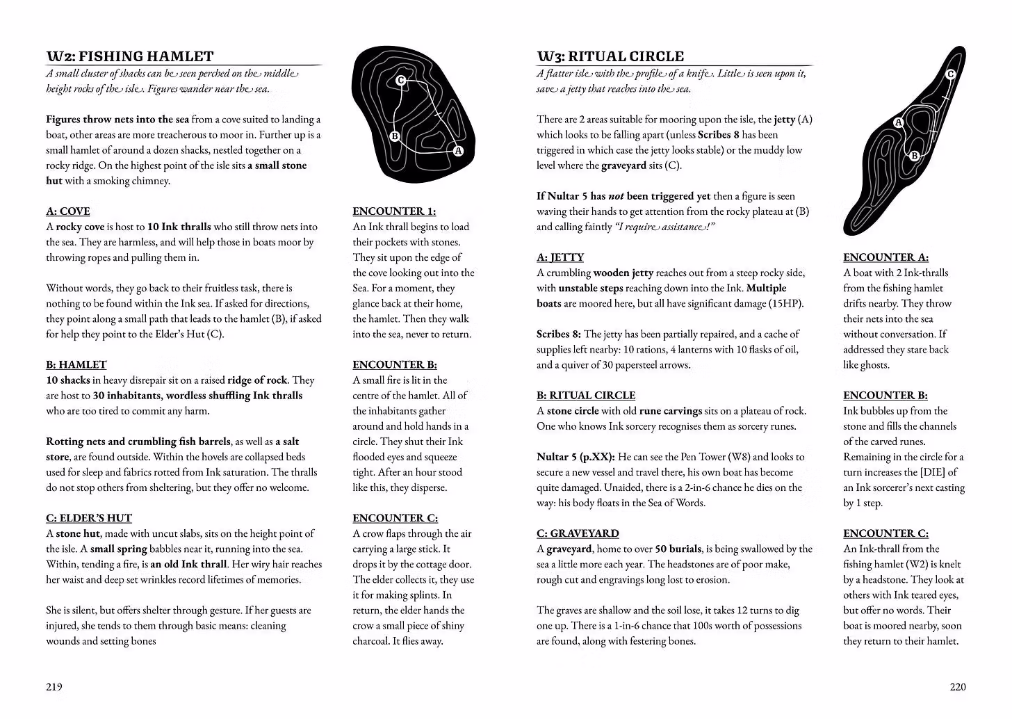 And for islands within the Sea of Words, each is contained on a single page which details their mini-pointcrawl.