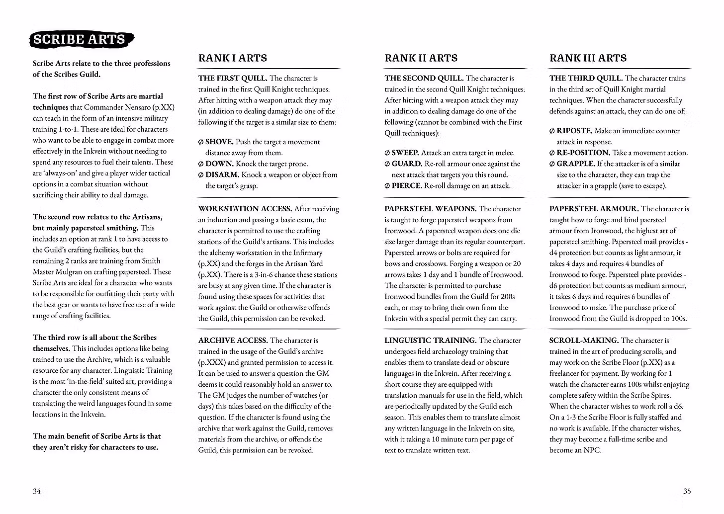 In the case of the Scribes, there are talents for martial techniques, artisan crafting, and research capabilities. Loads of distinct options!