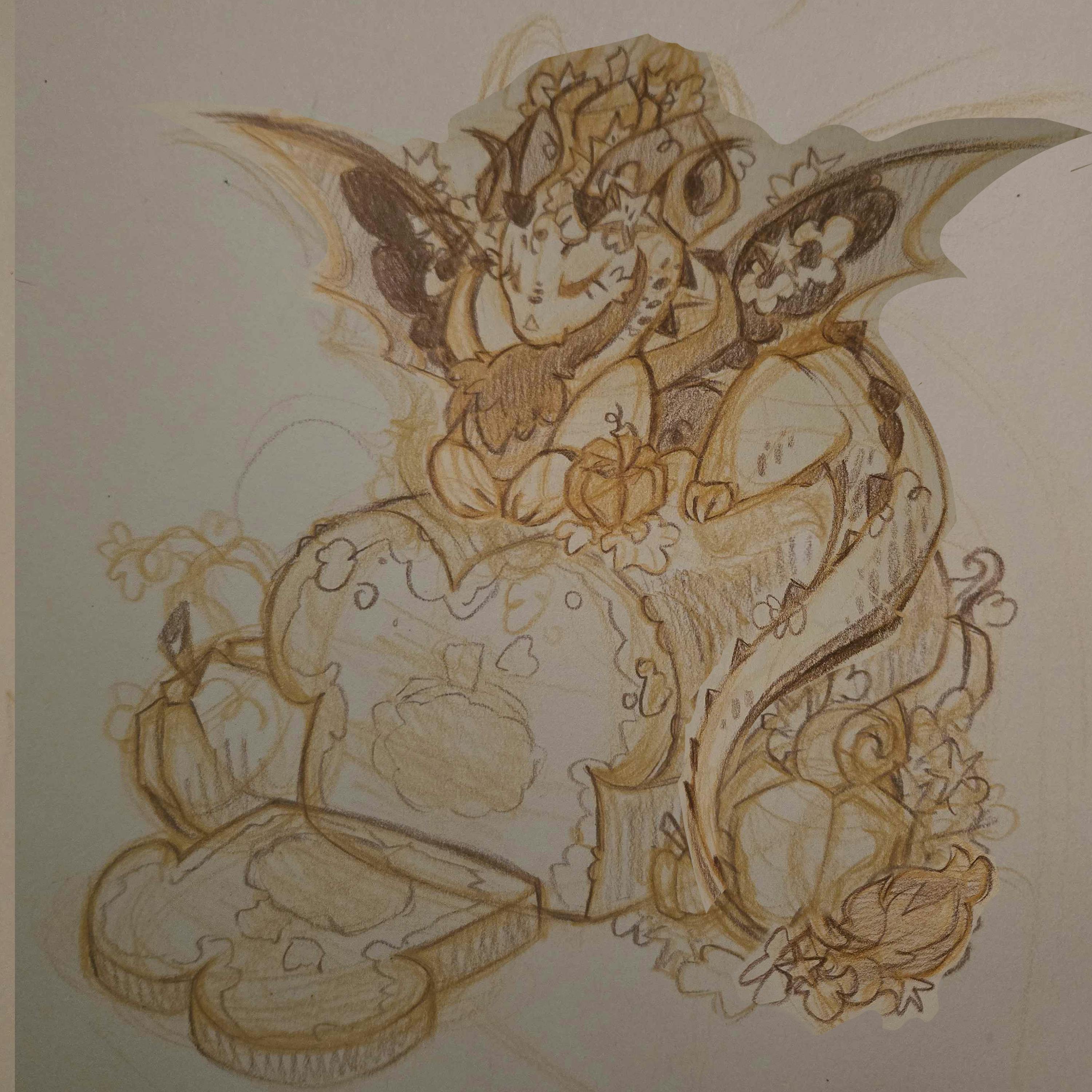 For now, here is the sketch! or two sketches, cuz I drew the bread and the dragon separate and then combined them in my art program lol I'm about half way done, so this little guy will show up on your surveys to either pick as a pin for your reward, or as an add-on. I have made a new reward tier for 7 pins for anyone who wants to get this guy for their reward, so that can be changed before within the next 10 hours. Of course we have made so much that they are already unlocked.