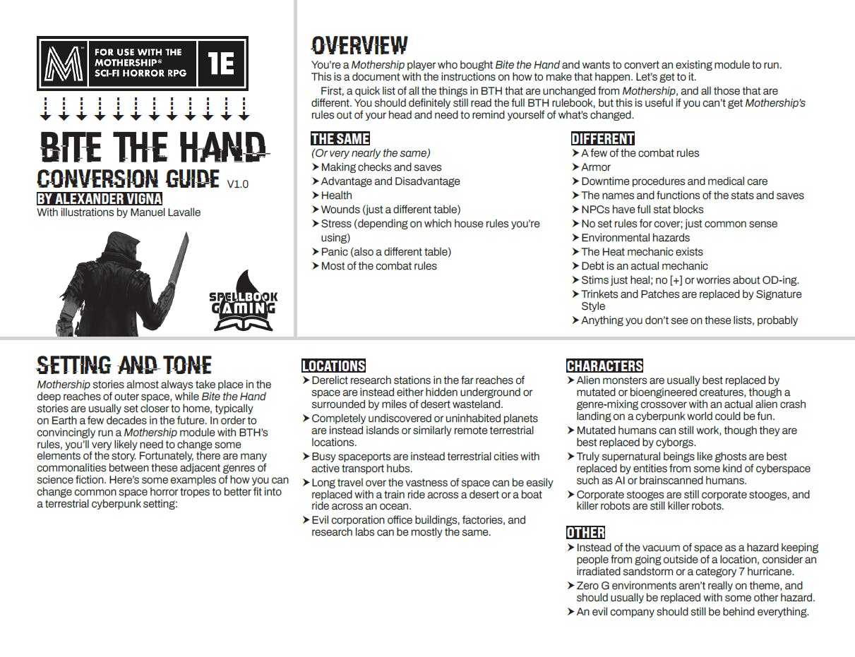 - Reverse conversion tips for using BTH items/mechanics in Mothership.