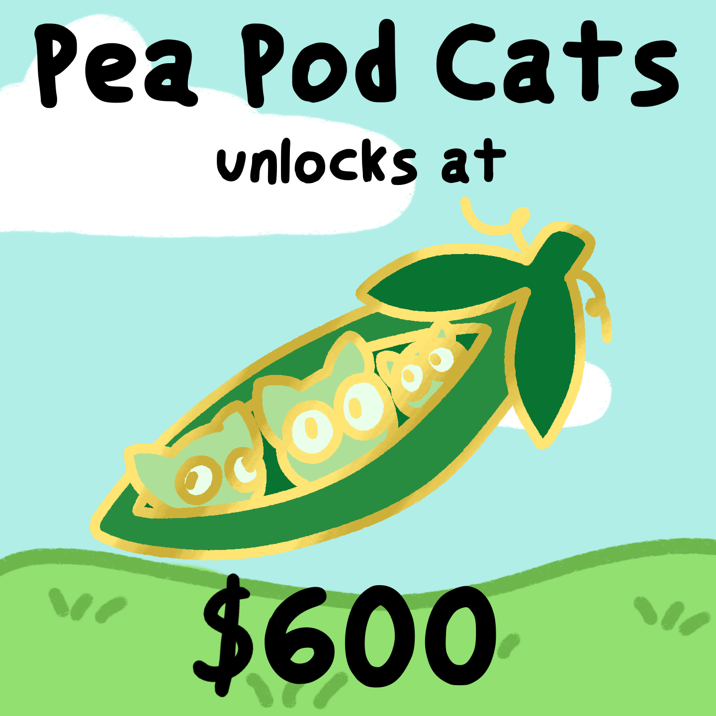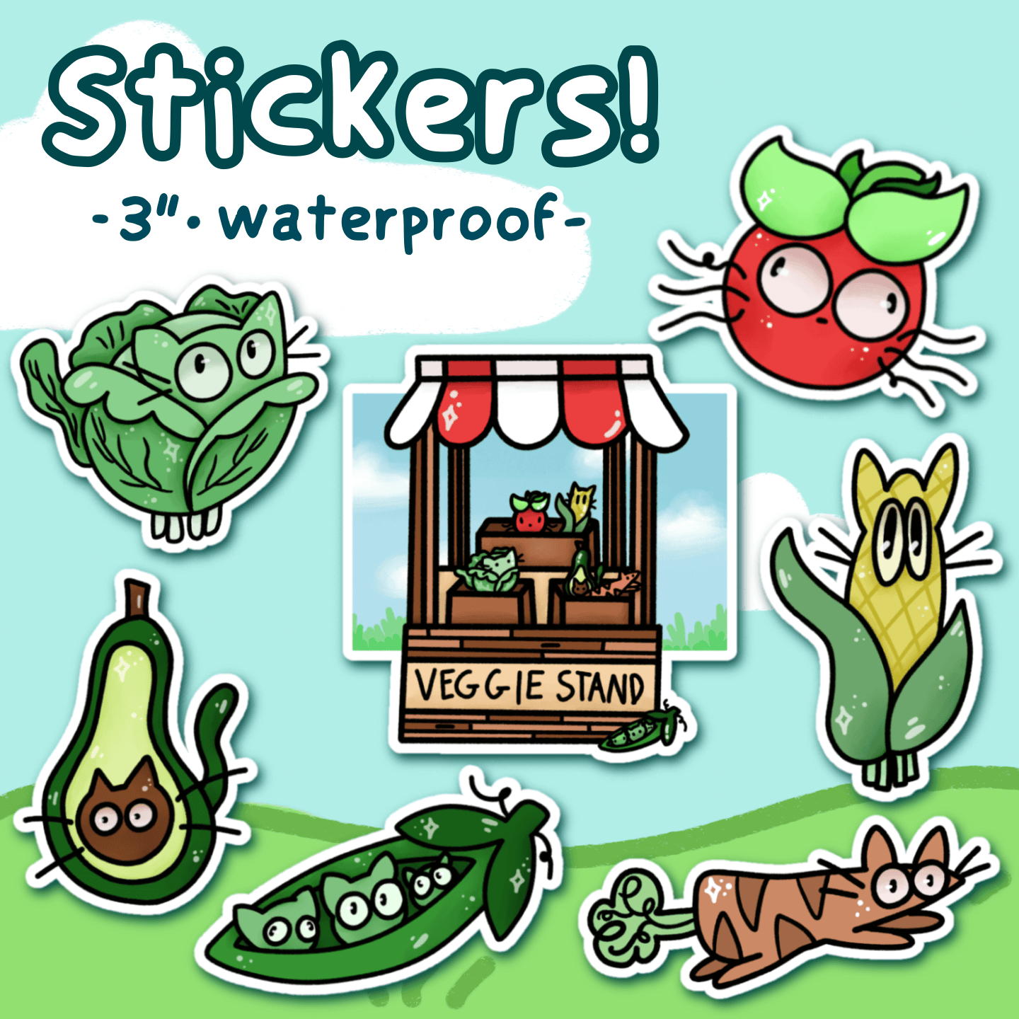 The initial goal of $350 will help us to afford the Cabbage Cat pin. After that, we will release an additional ~1.5β pin with each $250 raised (in order: Pea Pod, Corn, Carrot, Tomato, and Avocado). If we unlock all of those cats, we will then offer a special pin if another $500 is raised: the 2.5" Veggie Stand! If we overshoot all of these goals, we hope to make some new designs available (ex. Pepper, Broccoli, etc.). We also have special stickers available that are 3β at their longest length and weatherproof. Other add-ons will be available as well, like keychains, buttons, lanyards, and more!