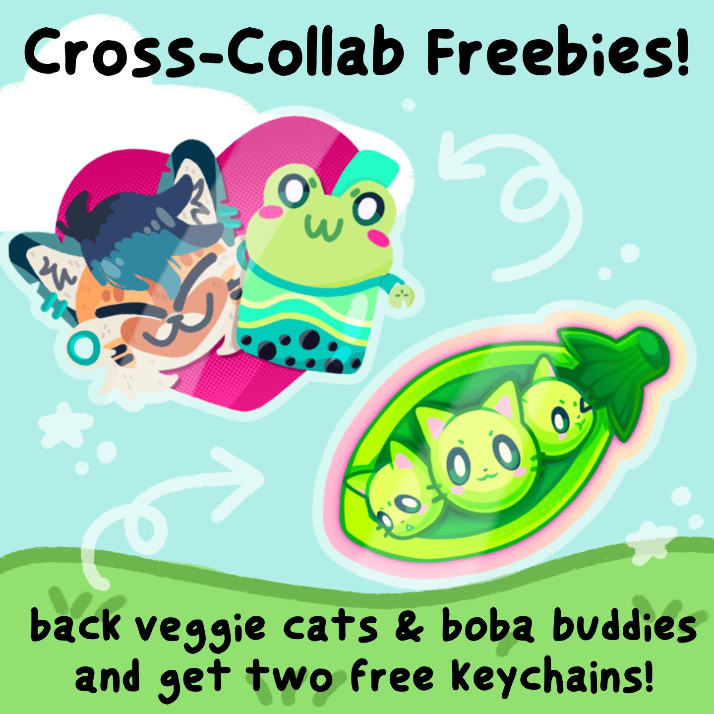 Please note: in order to recieve the collab keychain freebies, you will need to pledge for at least one boba bag from Boba Buddies and something more than stickers from Veggie Cats!