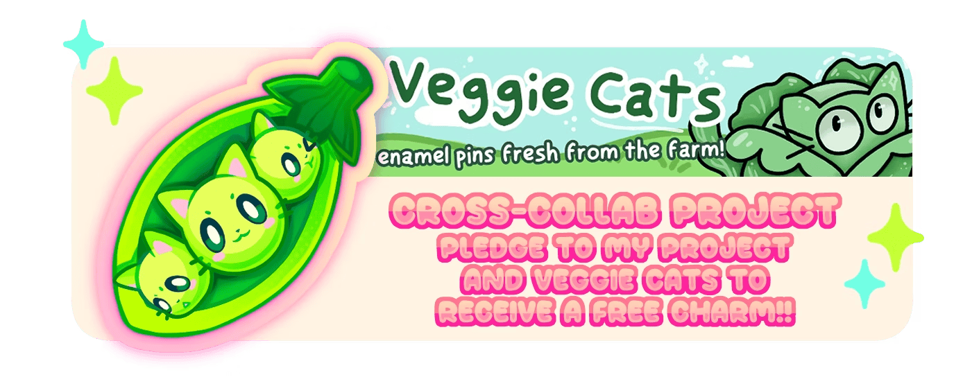 Next I absolutely have to share the work of our collab partner, Boba Buddies Plush Bags! These bags are impossibly cute. I think my favorite is the Frog but it's tough to choose! Plus Benji has a great track record because he's already made the first series of these amazing bags and they looked INCREDIBLE! Also since Boba Buddies is our collab partner, if you pledge for both of our projects you'll get some cute bonus keychains! This is his amazing design for the Pea Pod Cats!!