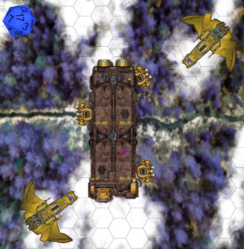 Drones make repairs on a long hauler while Dreadwings observe. Screenshot from Roll20.