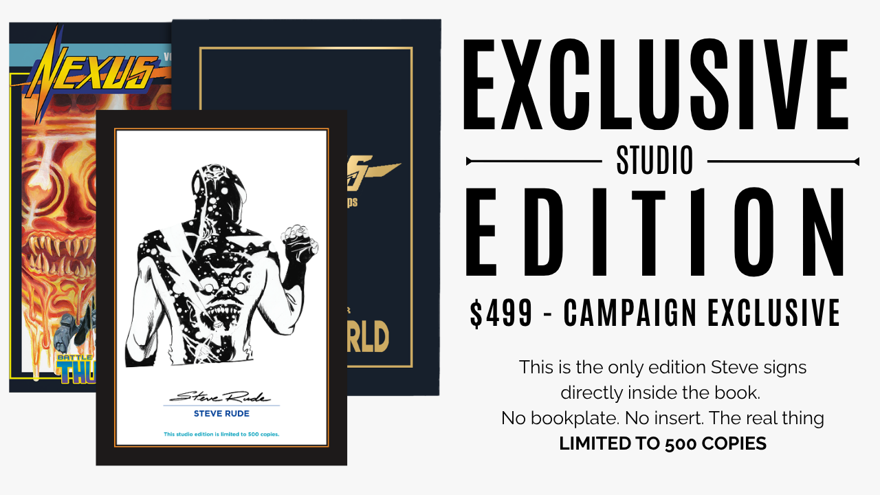 Whether you've followed Nexus since issue one or you're discovering Steve's work right now, welcome to Rude Dude Studios. Pull up a chair and enjoy the ride.