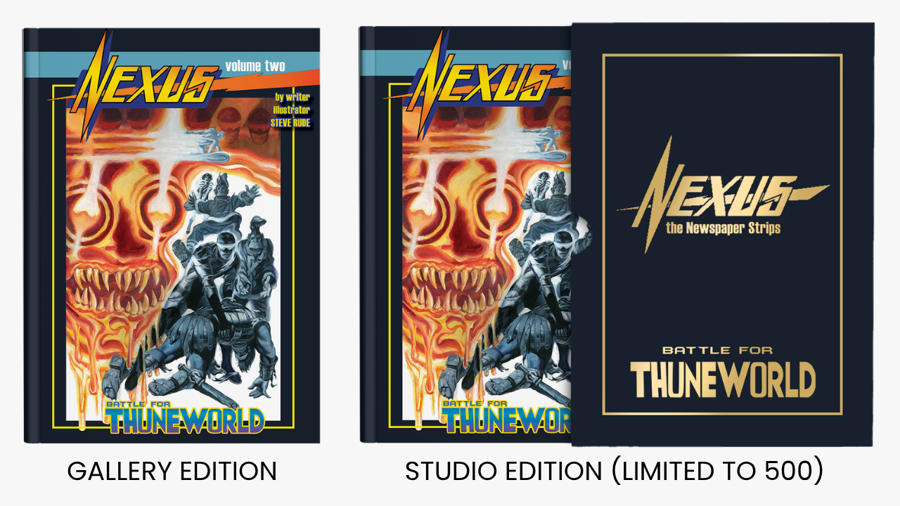 One book. One massive oversized hardcover. 324 pages of Steve's complete solo run on Battle for Thuneworld, shown as close to the drawing board as we can make it. The only choice is how deep you want to go.