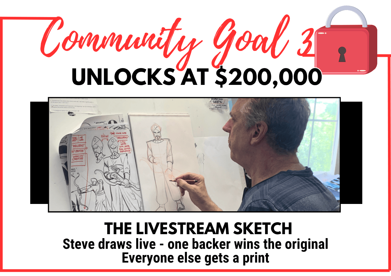 When we hit $200,000, Steve will do a livestream sketch demo. One backer will be chosen at random to receive the original sketch, and everyone else gets a printed copy included with their order.