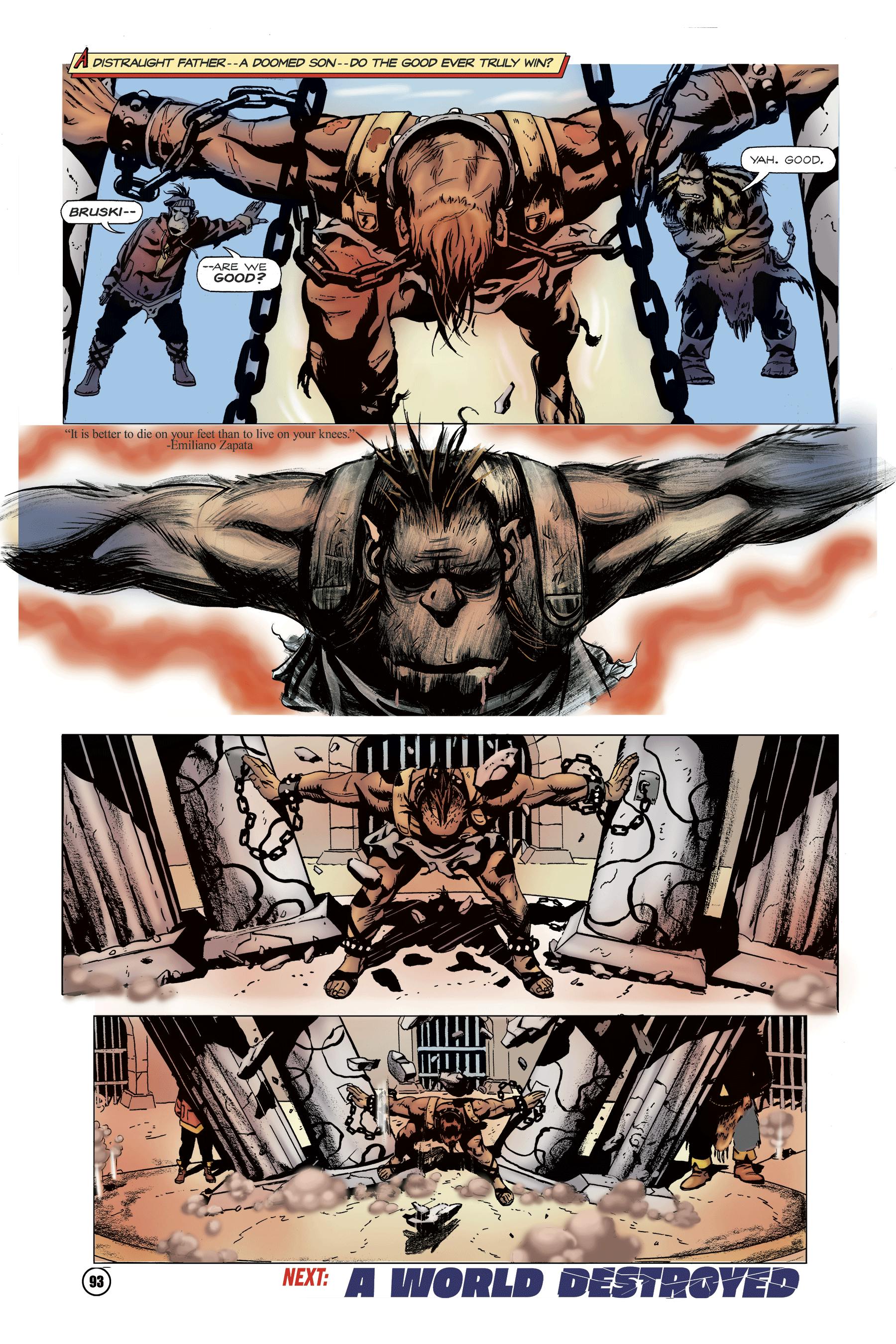 Page 93 is a battle scene that hits hard. Steve made one bold choice: he turned the entire page red. Even the colorist had to ask, "Wait... you mean literally red?" Steve stepped in and colored it himself, with Jaynelle's help, to get exactly the effect he wanted.