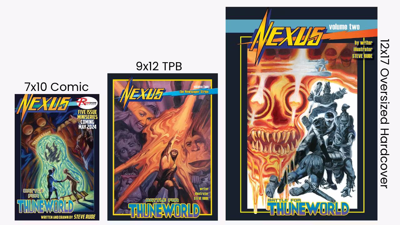 Thuneworld Trade Paperback (9x12 in / 22.9x30.5 cm), signed by Steve Rude - $40 Choose your cover at campaign checkout while supplies last. (Note: If you are pay over time you may email us your option and we will reserve it for you).
