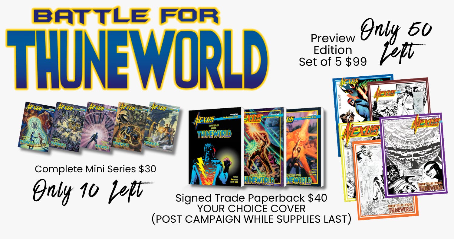 Never read Nexus before? Start here. Battle for Thuneworld is written to stand completely on its own, while still giving longtime readers plenty to dig into.