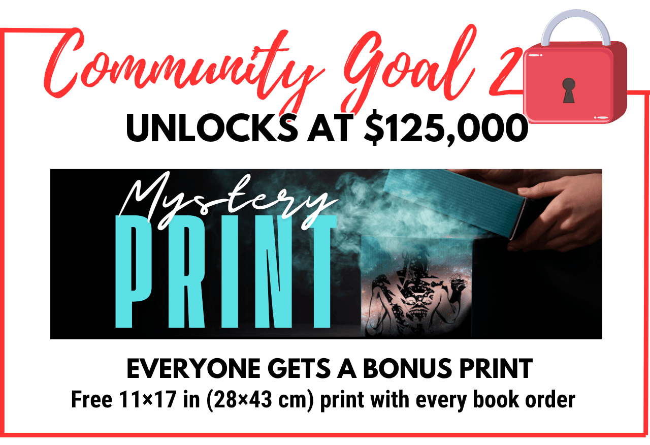 When we hit $125,000, every book order gets a free 11 x 17 bonus print included with it. We'll reveal the artwork when the goal unlocks.