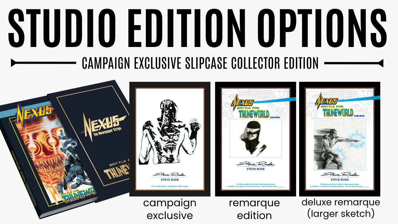 This edition will not be sold through distributors or comic shops. Retailers can only get the Studio Edition by backing this campaign alongside you. Limited to 500 total. When it is gone, it is gone.