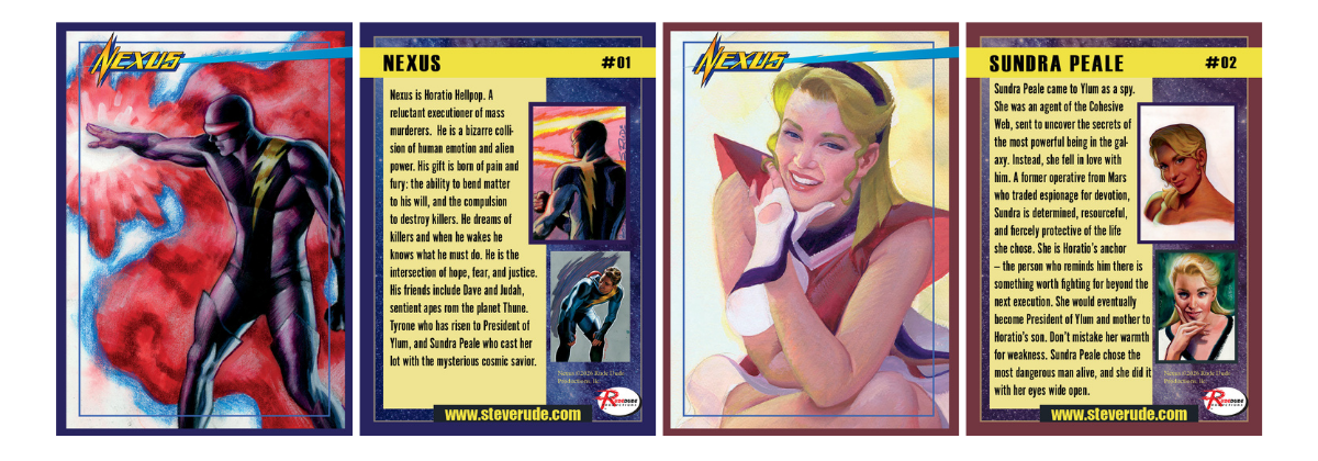 We’ve got fronts and backs finished up, and the bios make these feel like a mini character guide to Thuneworld and beyond.